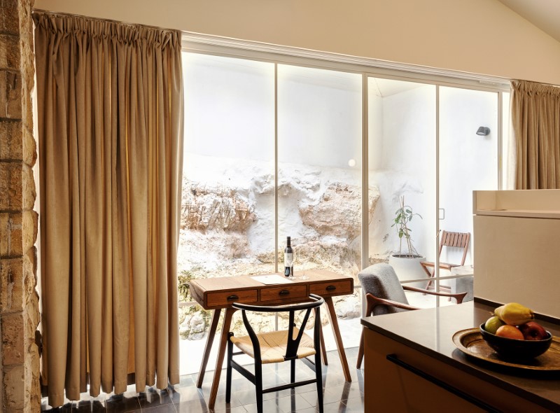 פרויקט חלונות ודלתות מפרופיל בלגי במלון בוטין חאן עין כרם. בפרוקיט ניתן להתרשם מטקסטורה מעניינת של חלונות ודלתות המלון.