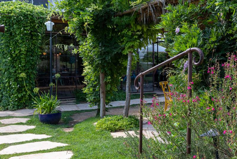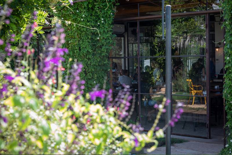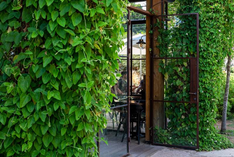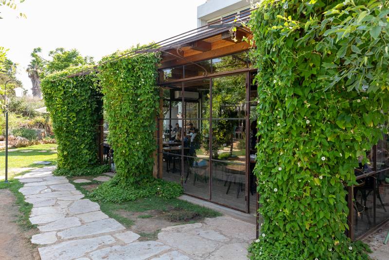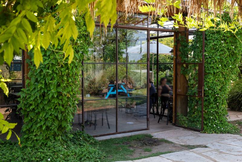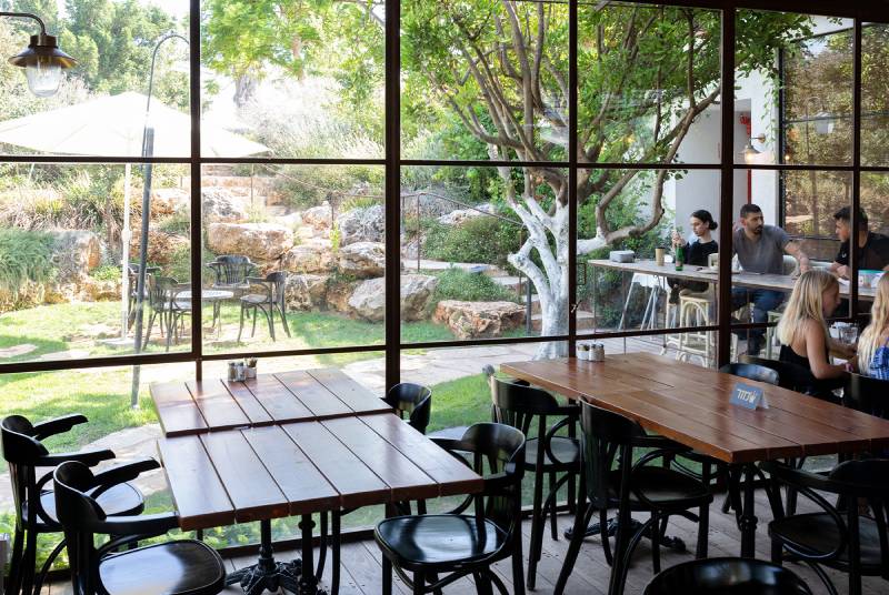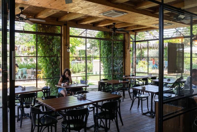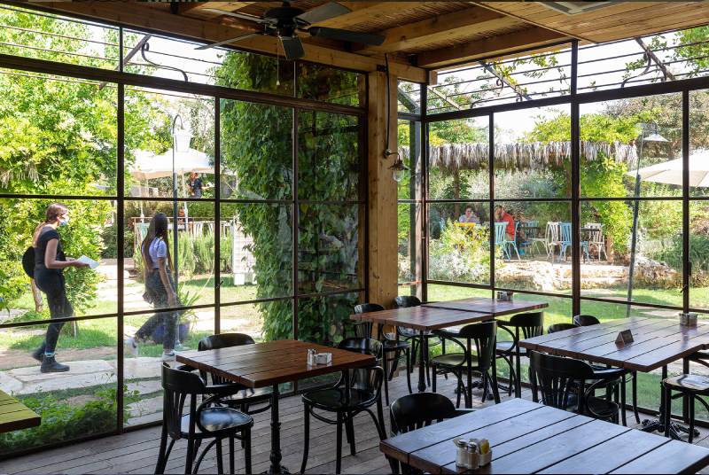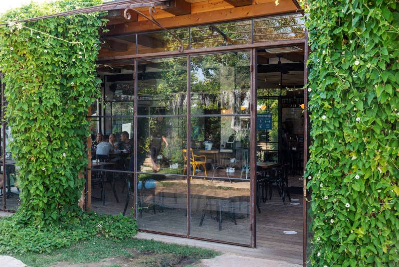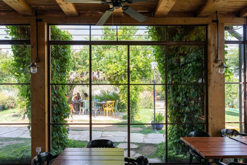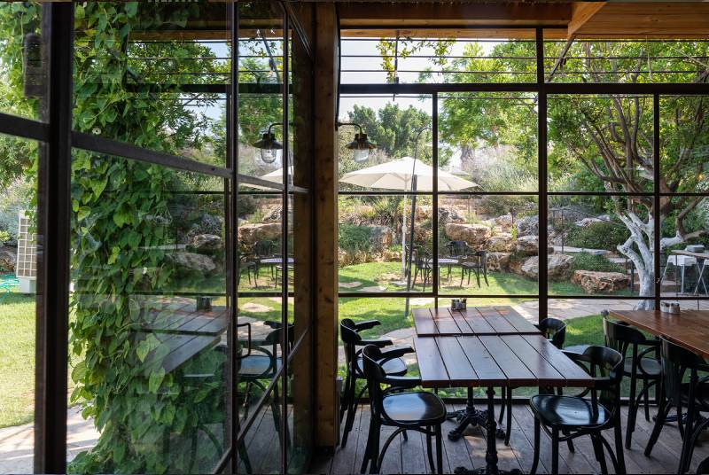 פרויקט סאן קפה בצרה – חלונות בלגיים מהרצפה עד התקרה, מלא טבע מסביב, עיצוב כפרי