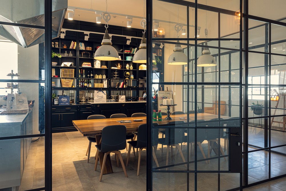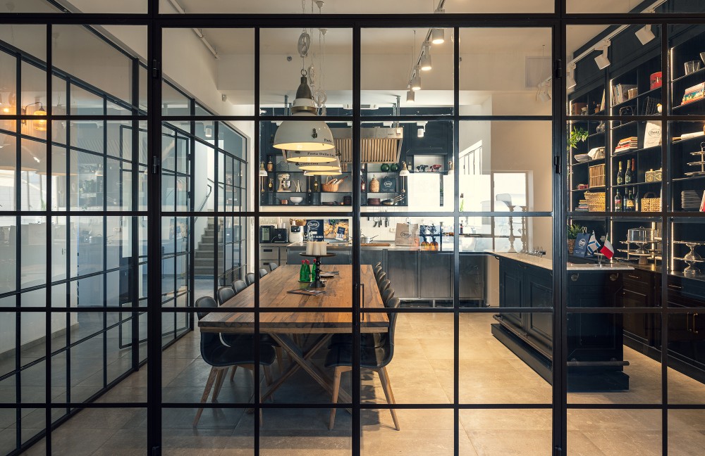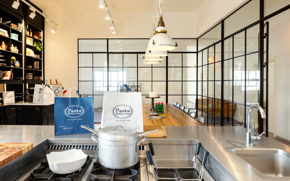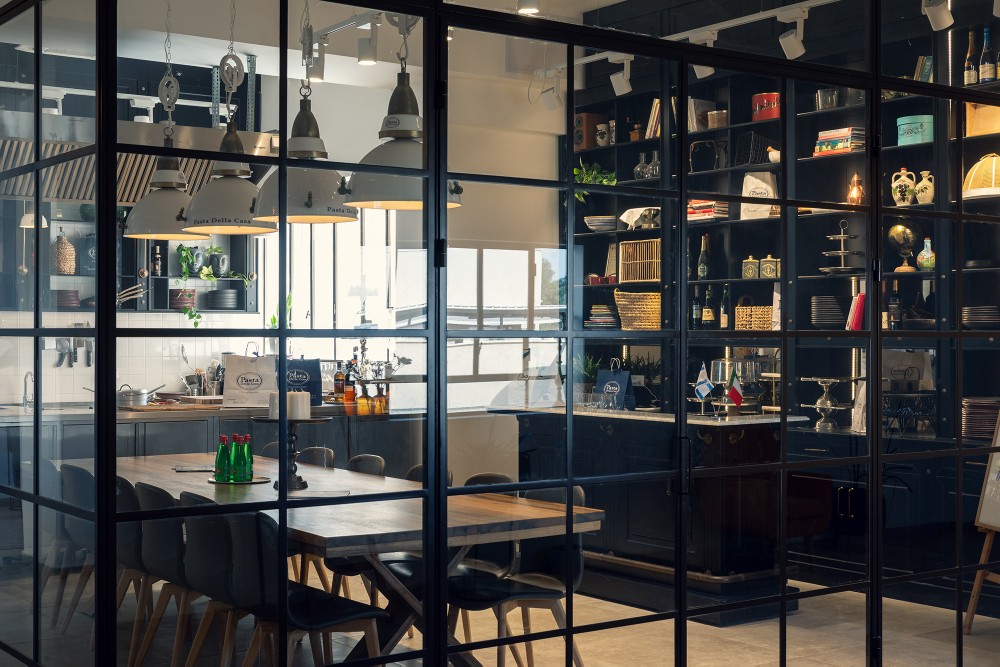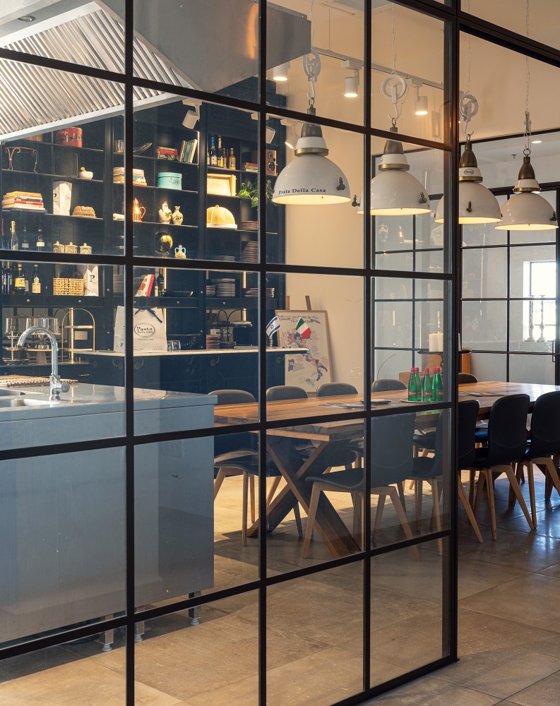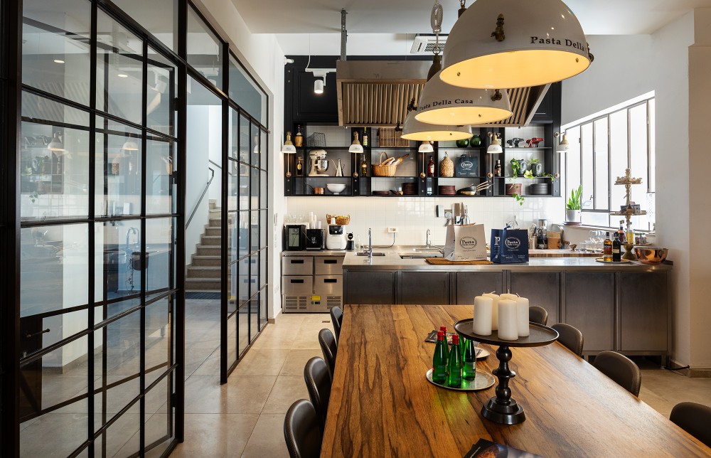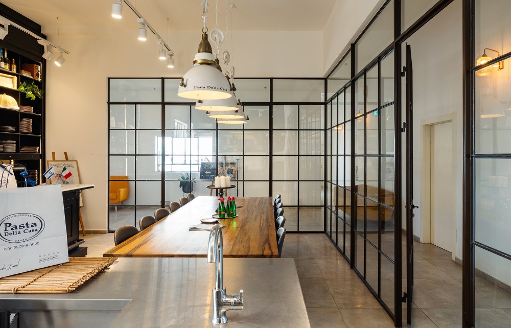 בפרויקט פסטה דלה קאזה יצרנו אקווריום מרהיב מפרופיל בלגי אלגנטי אשר תוחם מטבח לבישול פסטה טריה ושולחן אבירים לטעימות.