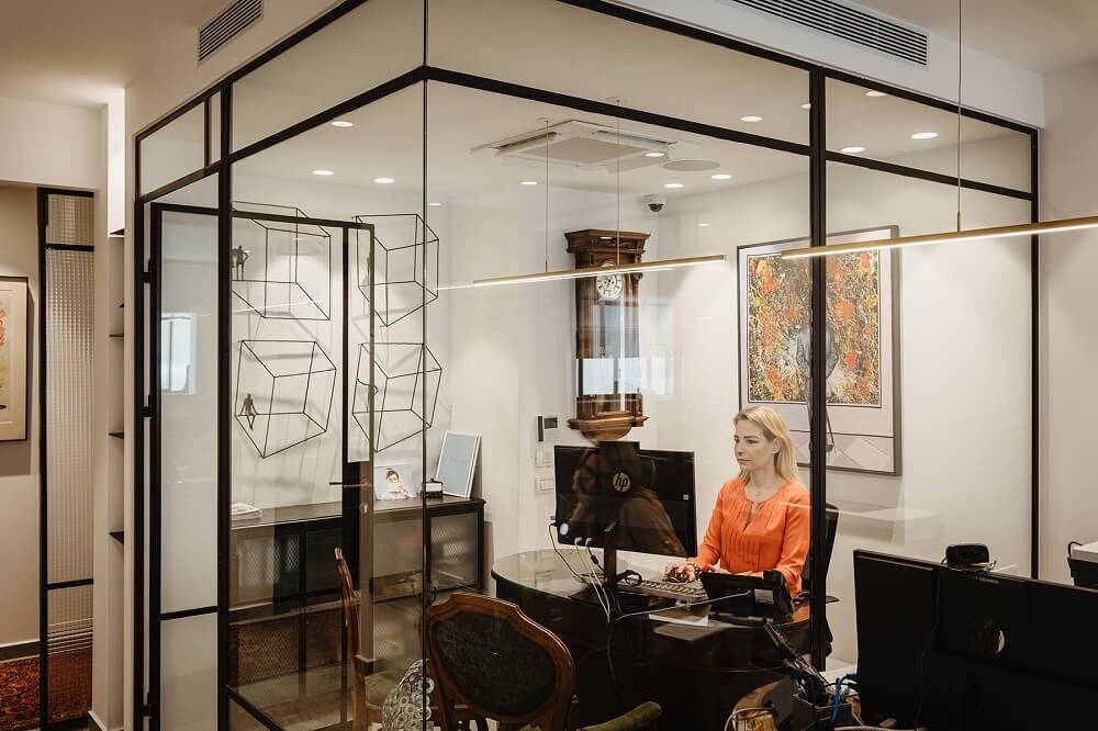 סגירת חללים למשרדי מרפאת השיניים של ד"ר רוני אמיד בתל אביב מפרופיל בלגי. מעצבת: אריאלה לביא צלם: רועי מזרחי