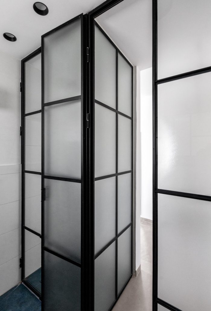הבית באבן יהודה, פרויקט מיוחד בשיתוף המעצבת קרן בר. בפרויקט זה לקחנו חלק בהתקנת דלתות מפרופיל בלגי שחור ואלגנטי בחדר הרחצה.
